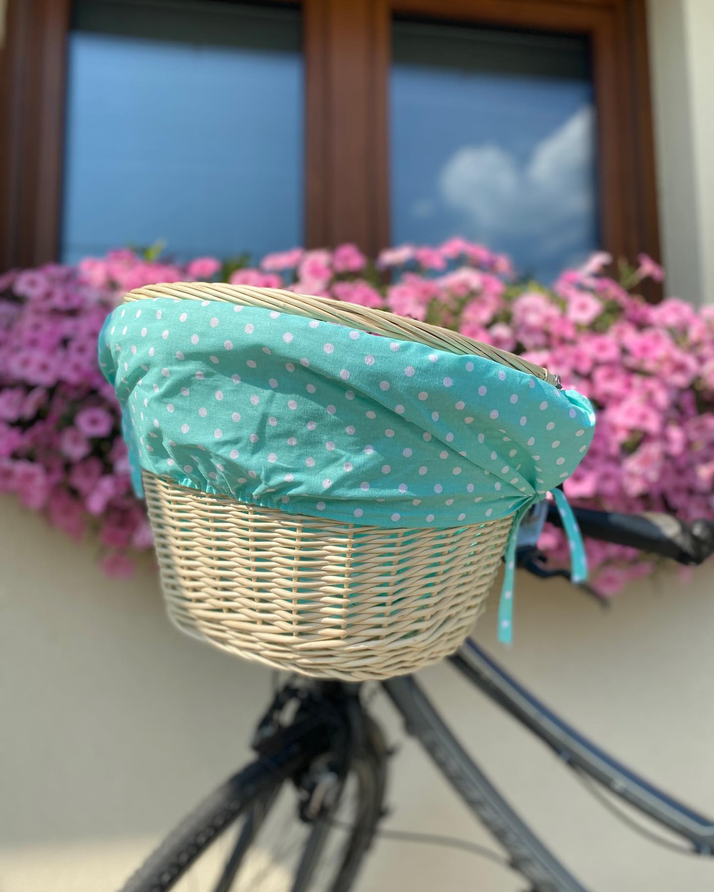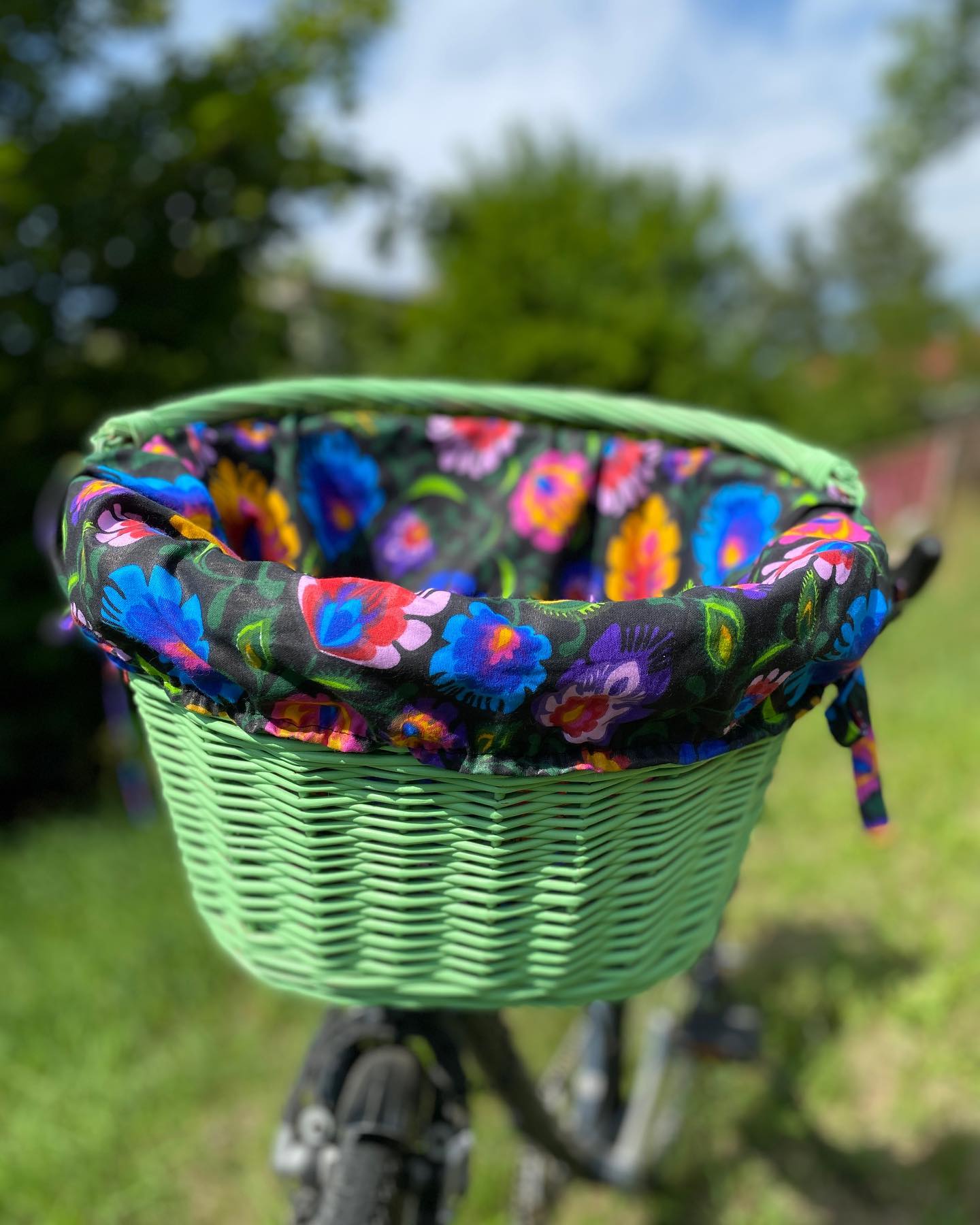 Wiklinowy koszyk na rower z wymienną tkaniną to nie tylko hit estetyczny, ale i funkcjonalny mistrz. Chcesz romantyczne kropki w maju, pastelowe kwiatki w lipcu, a kratkę retro na wrzesień? Proszę bardzo! Tkaninę wyjmujesz w sekundę – pierzesz, zmieniasz, dobierasz do humoru albo outfitu. A przy tym chroni zakupy i bułeczki przed słońcem i kurzem.