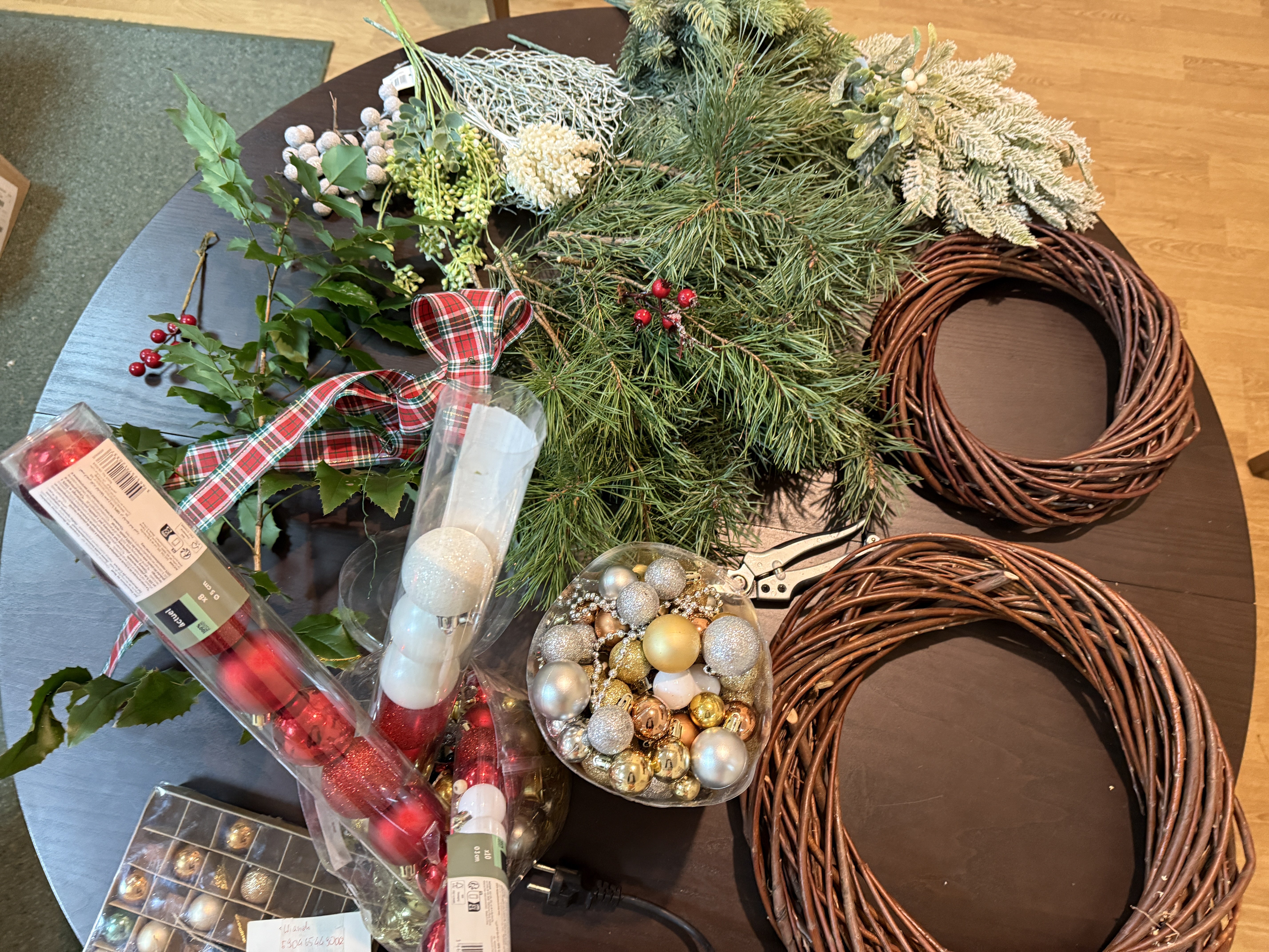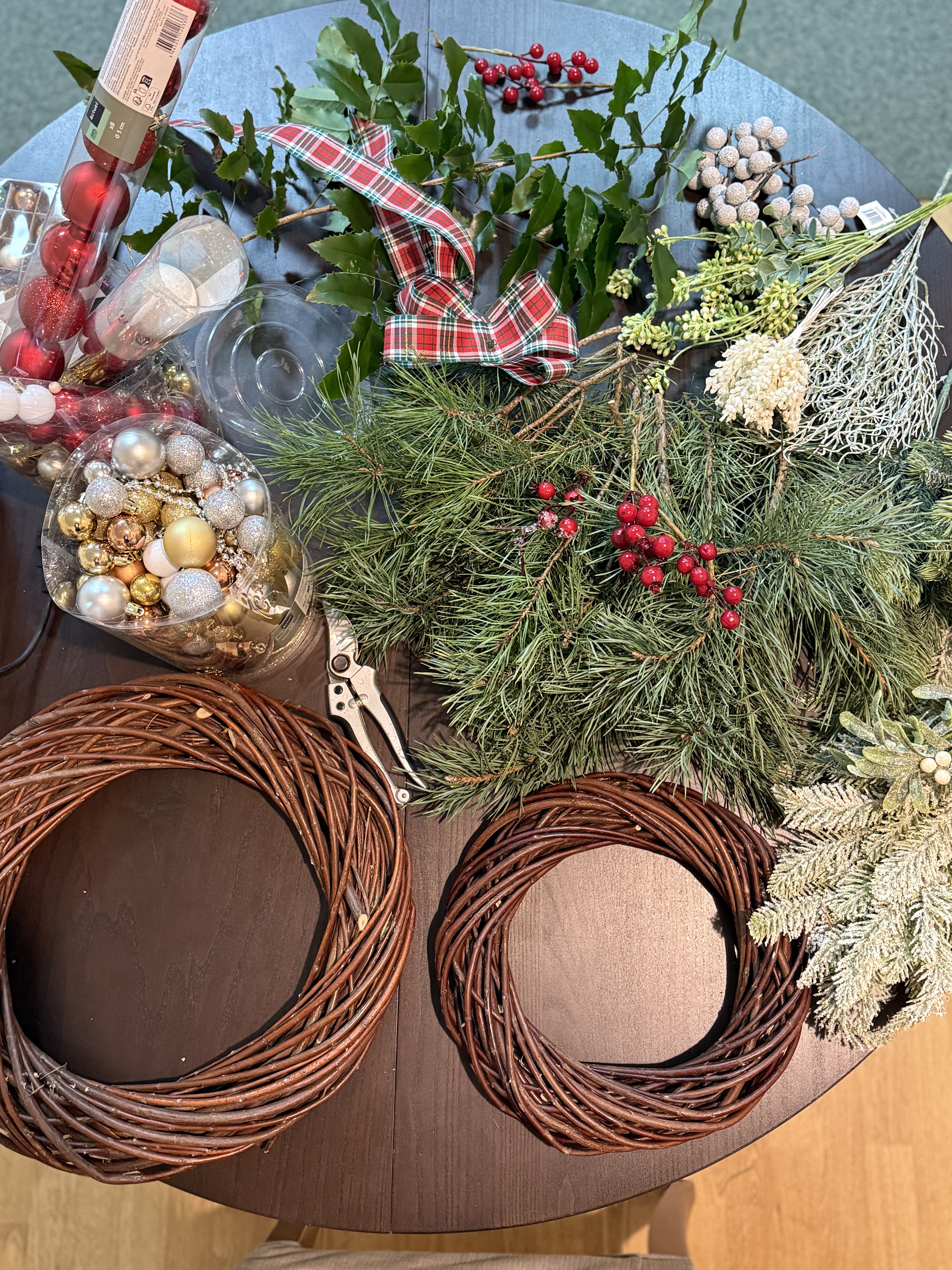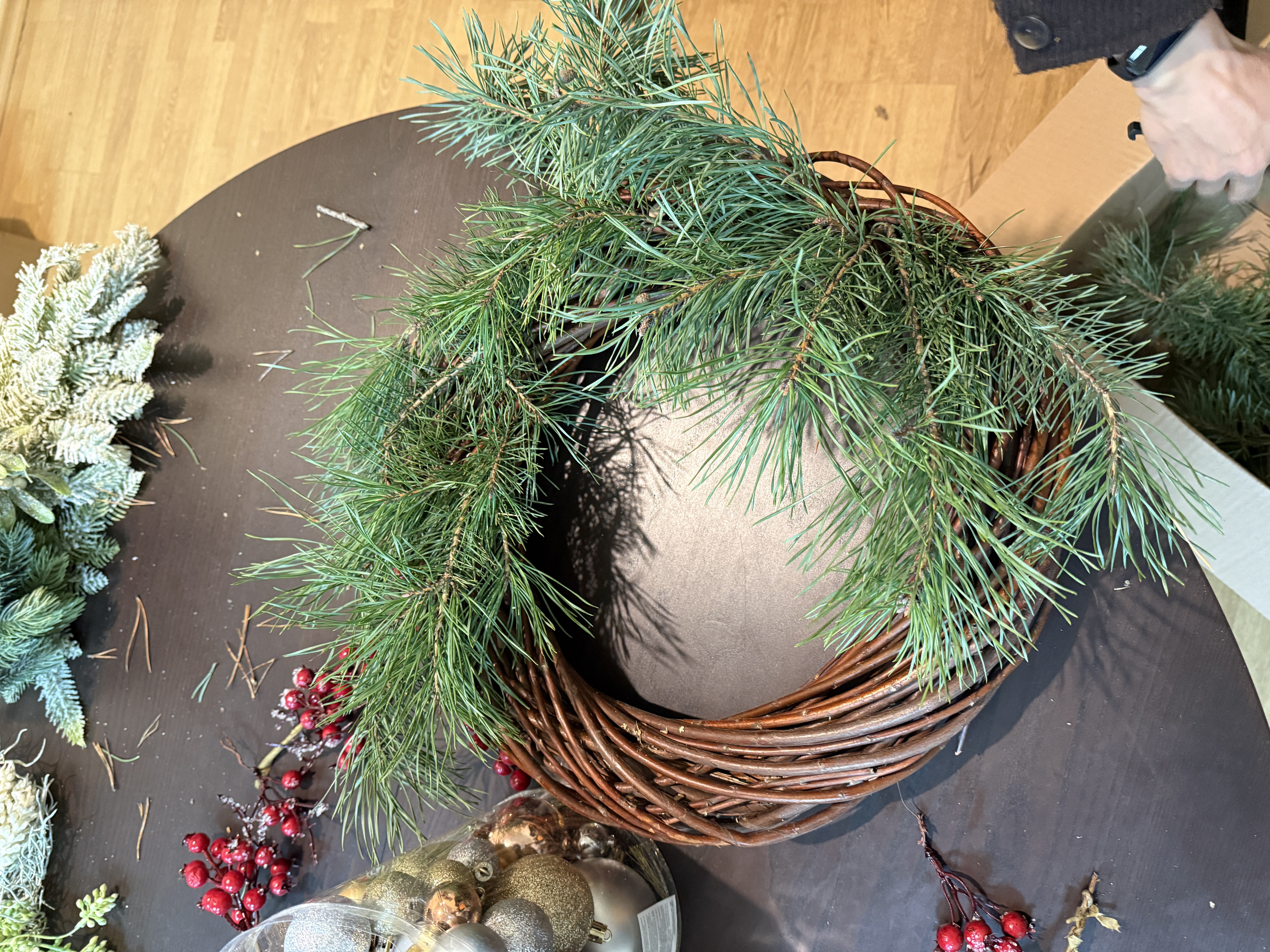 Duże elementy to „szkielet” świątecznego wianka – reszta to dopiero dopieszczanie.