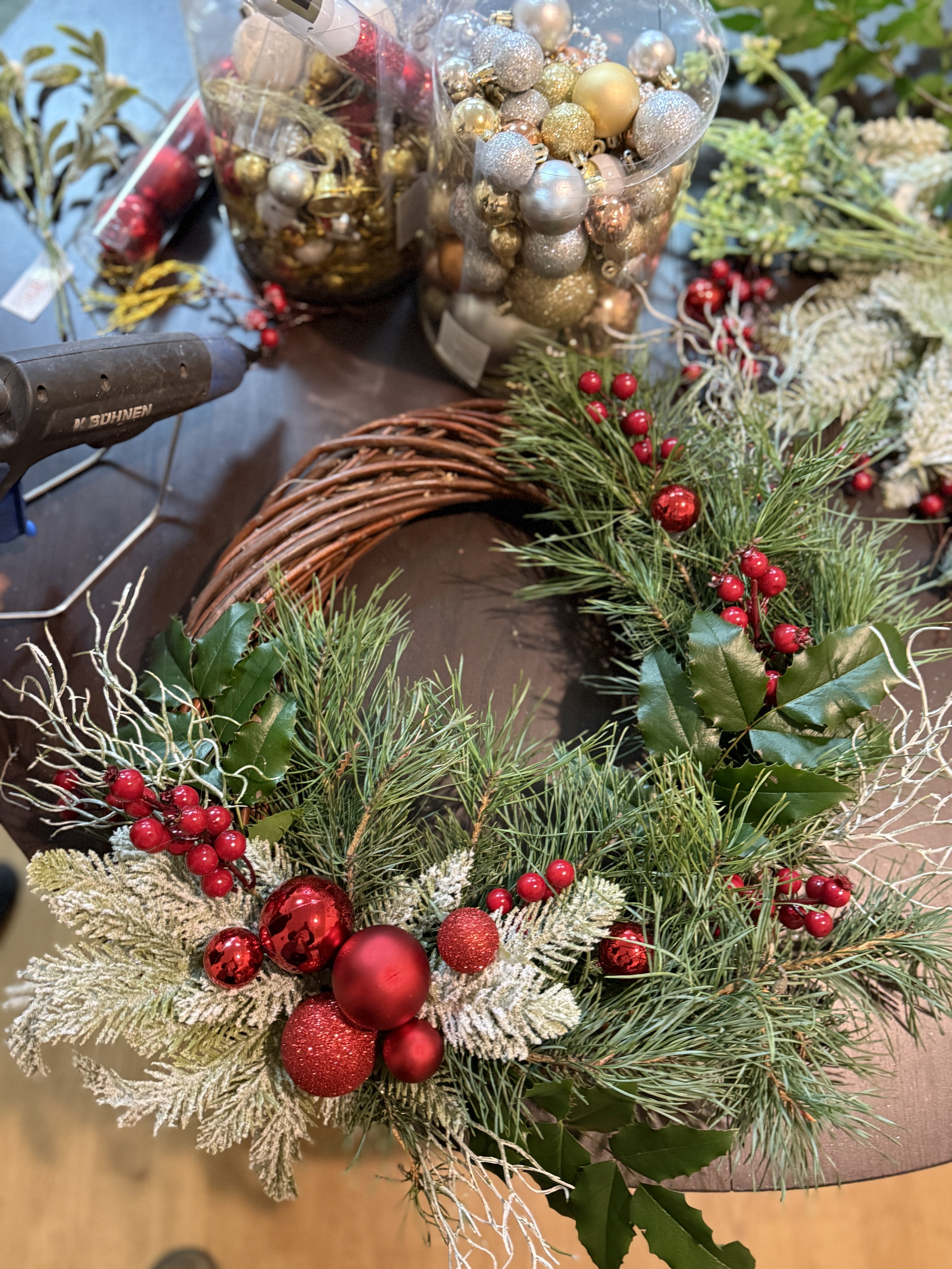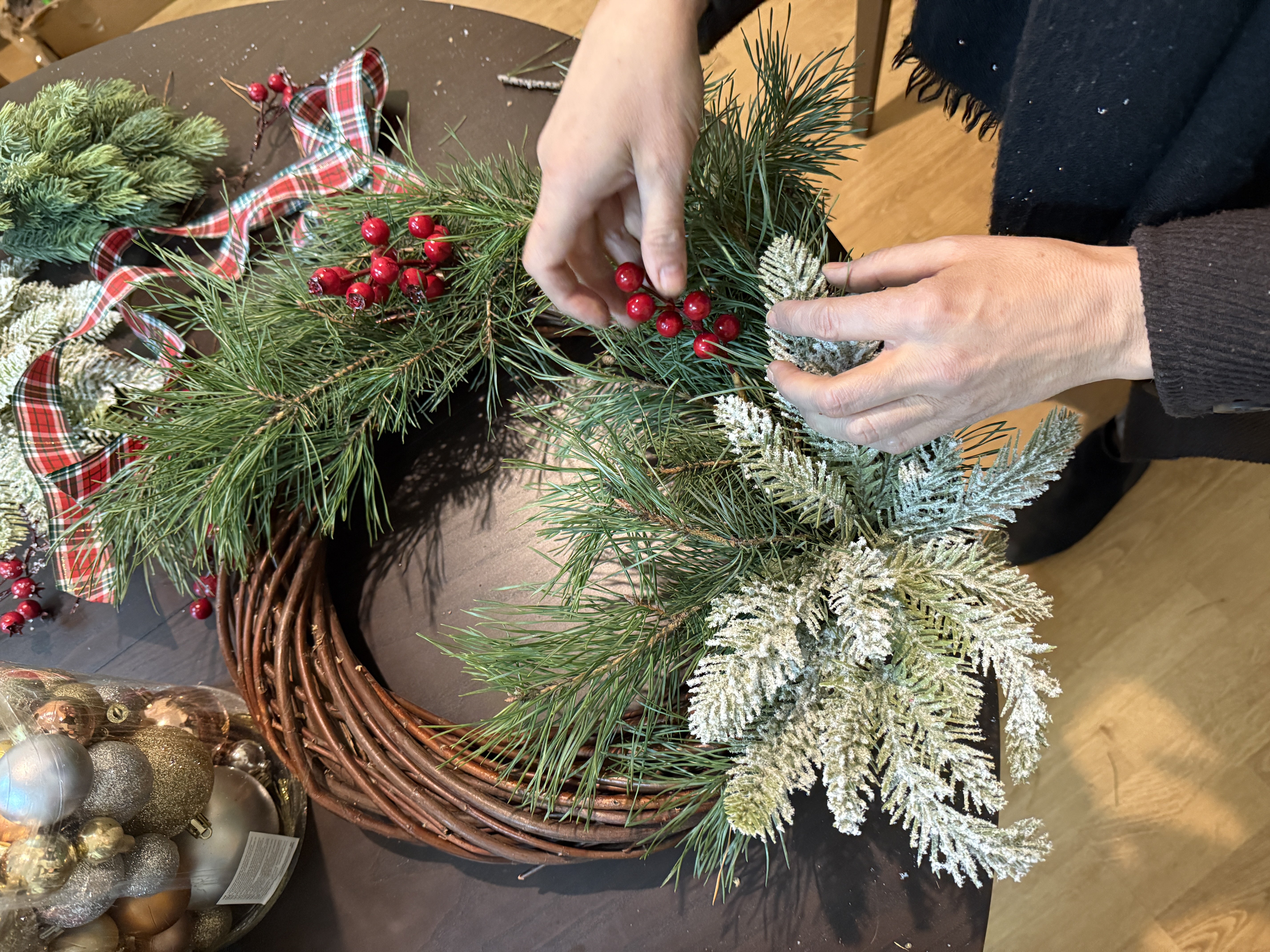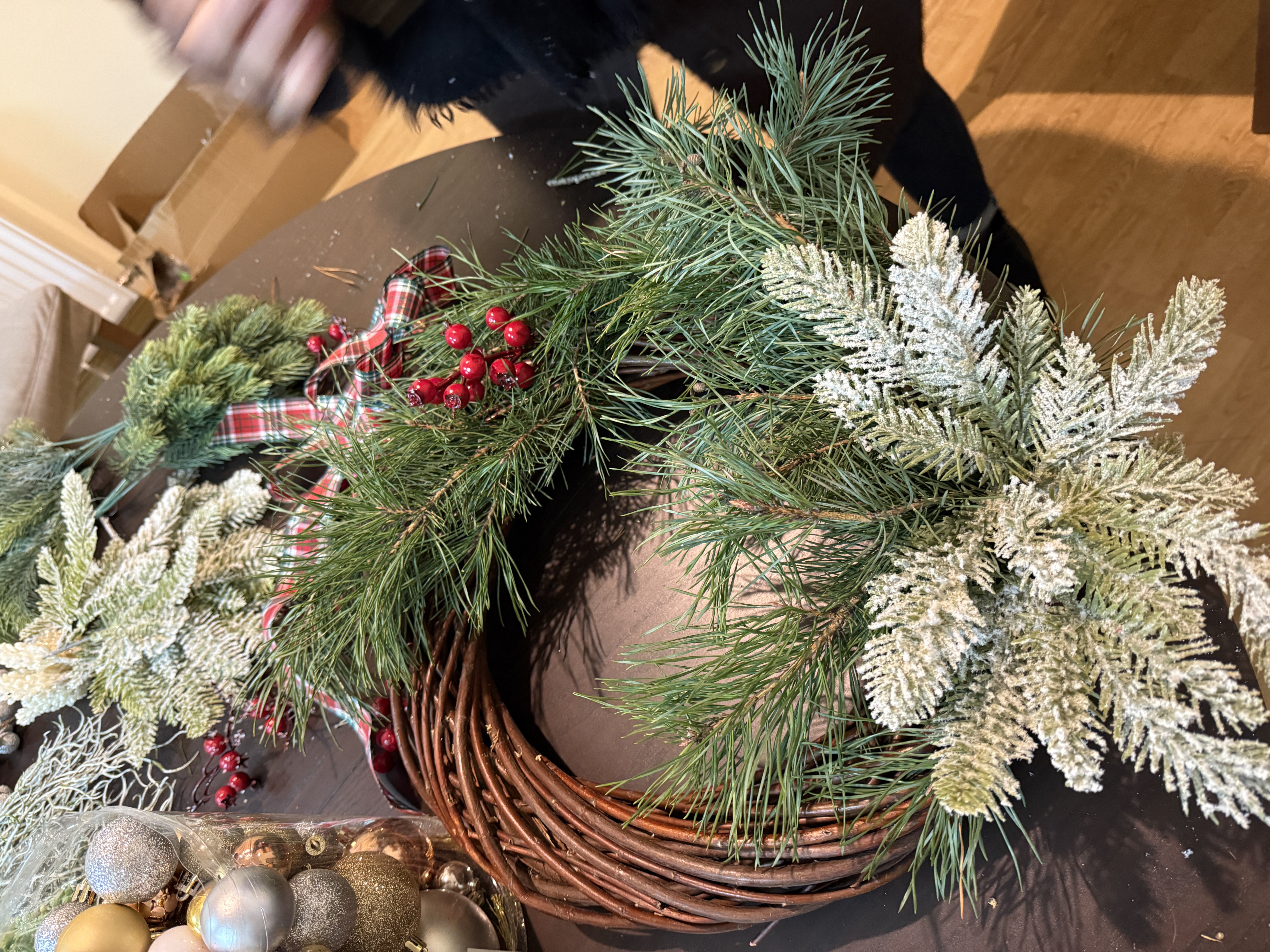 Duże elementy to „szkielet” świątecznego wianka – reszta to dopiero dopieszczanie.