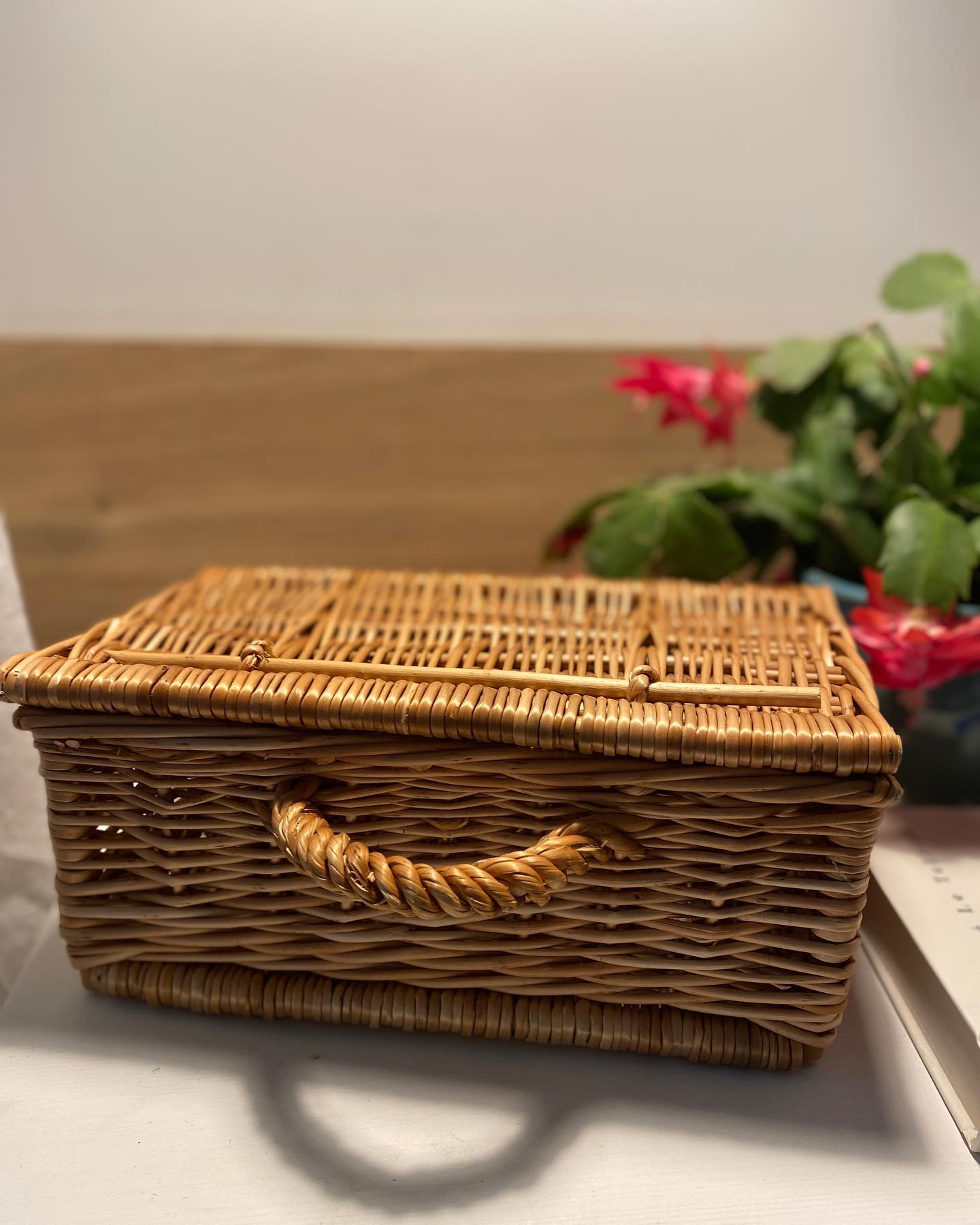 Jedna większa skrzynka wiklinowa przy ławce czy szafce i: