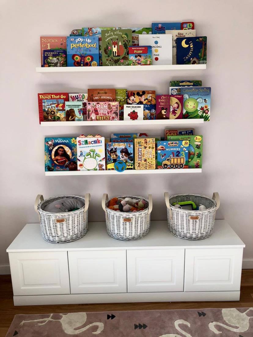 Zabawki to osobna kategoria chaosu. Skrzynki wiklinowe są tu genialne, bo: